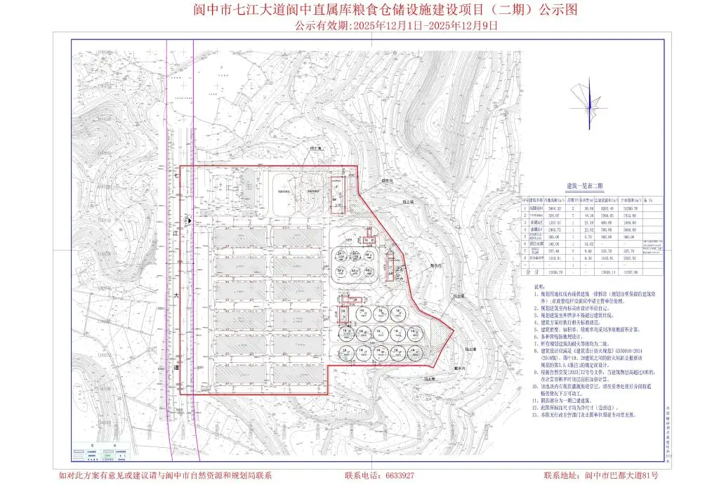 该项目位于阆中市七江大道,紧邻现有的一期粮库。根据公示内容,二期项目将大幅提升仓储能力,完善配套设施。
