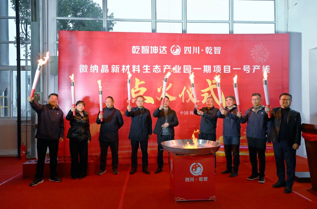 2026年1月19日上午,在阆中宜华产业园内,随着多位嘉宾共同举起火炬,四川微钠晶新材料生态产业园一期项目一号生产线正式点火启动。